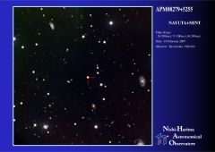 | APM08279+5255(クェーサー) 低解像度 (282KB) 高解像度 (2.3MB) 赤:Rバンド 300秒 緑:Vバンド 300秒 青:Bバンド 300秒 観測日:2007/ 2/19 天体個別ページへ |