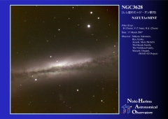 | NGC 3628(しし座のエッジオン銀河) 低解像度 (676KB) 高解像度 (1006KB) 赤:Rバンド 450秒 緑:Vバンド 450秒 青:Bバンド 900秒 観測日:2007/ 3/17 天体個別ページへ |