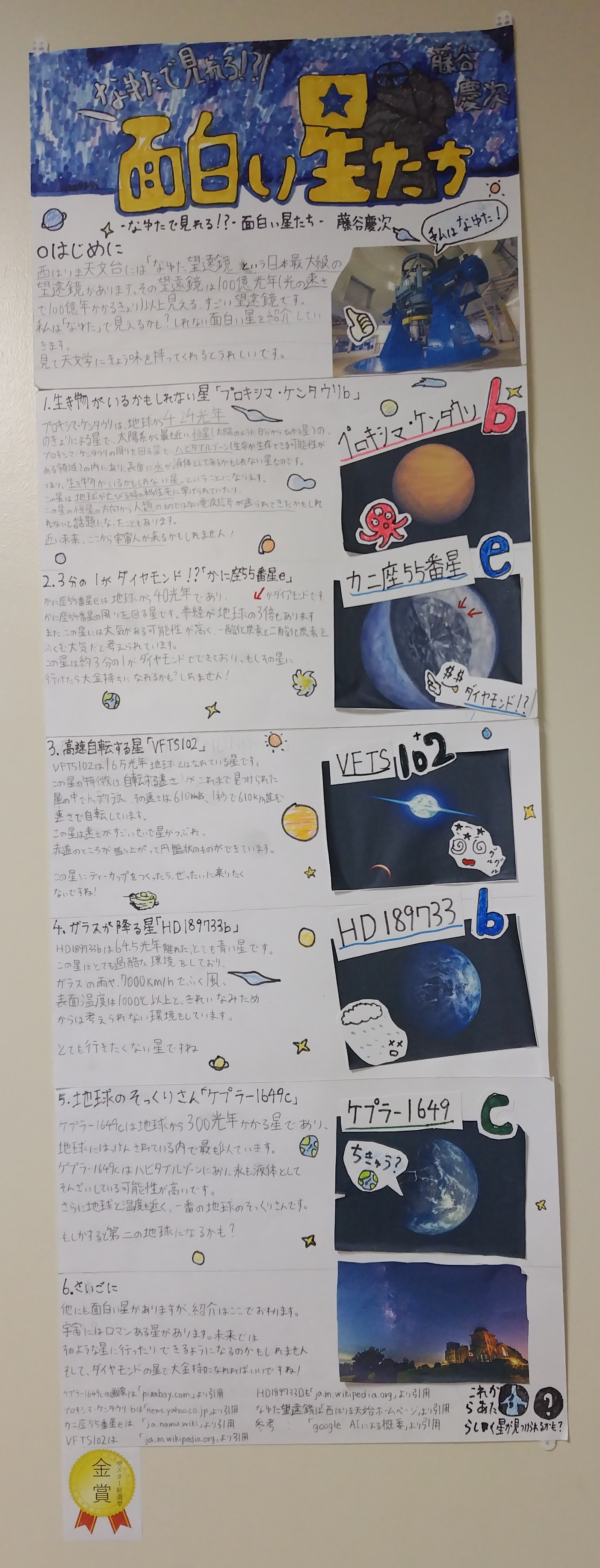 他の方々も含め、どれも素晴らしいポスターとなっています、 天文台に来られた方は、南館のポスター展示もぜひご覧ください。