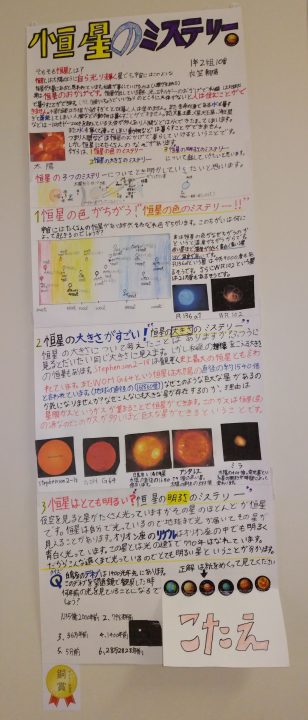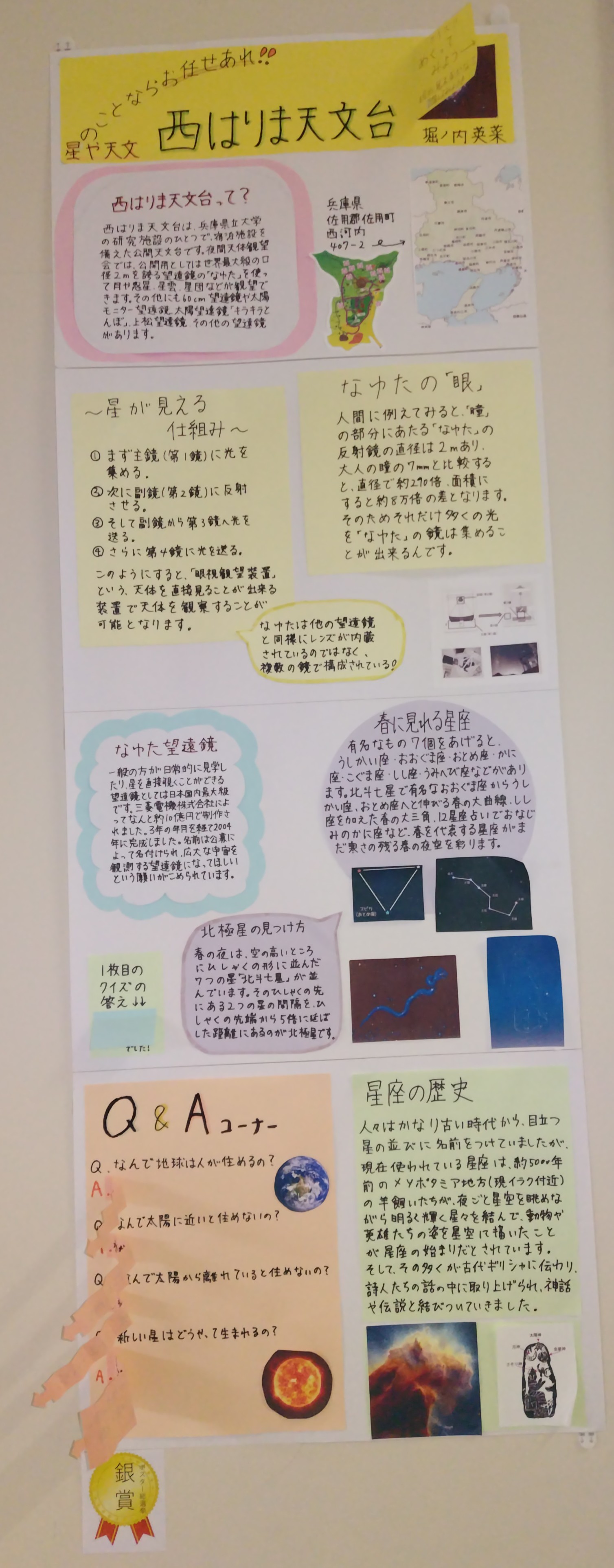 西はりま天文台南館には、附属中学の生徒さんが作られたポスターを展示しています。