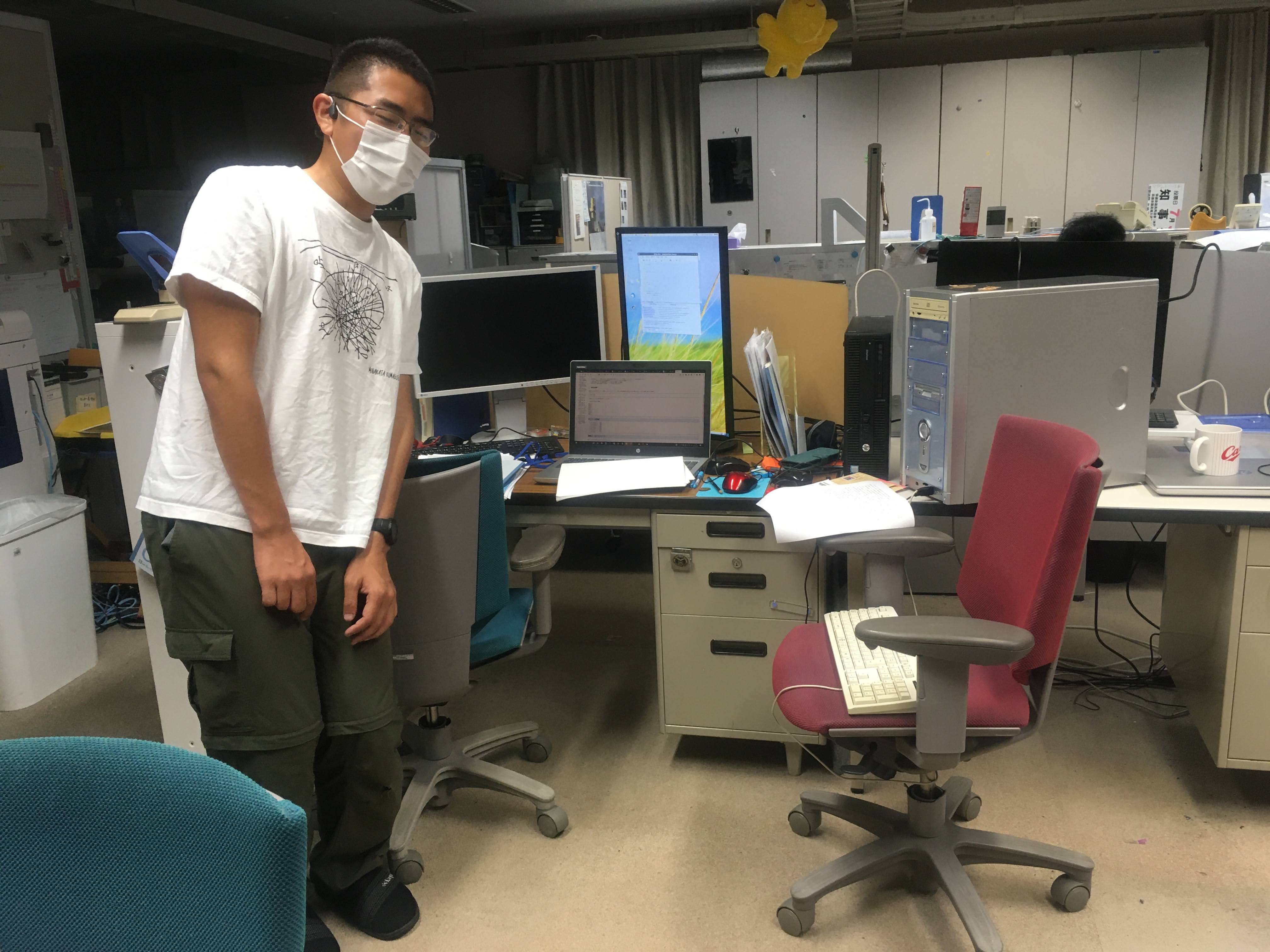伊藤先生到着。学生はまだ来ていません! 研究員の姿もほぼありませんね。 |